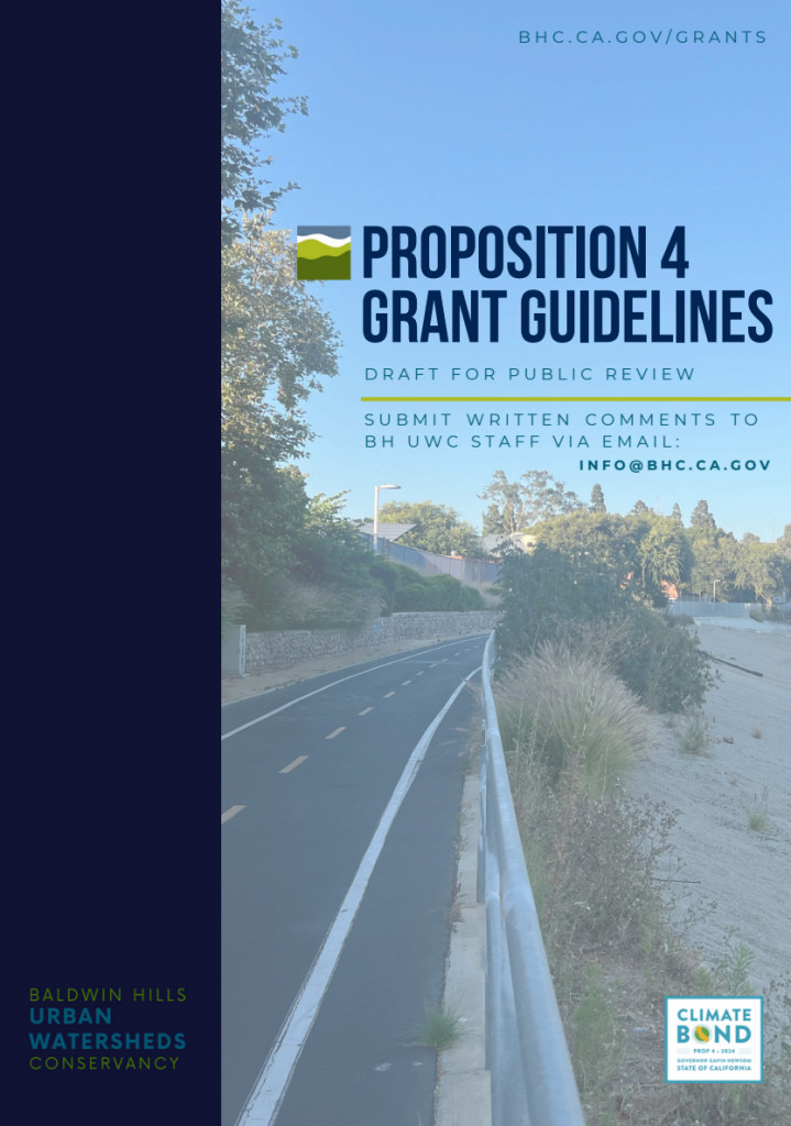 BH UWC Proposition 4 Community and Climate Resilience Grant Program Guidelines – A new grant funding program for the administration of the Conservancy’s Proposition 4 funding allocation (Draft for Public Review). Submit written comments to BH UWC staff via email at: Info@bhc.ca.gov